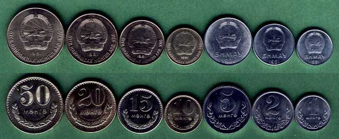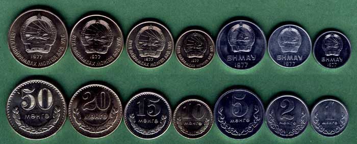 5 mungu KM29 (aluminum), 10 mungu KM30 (nickel), 15 mungu KM31 (nickel), 20 mungu KM32 (nickel).