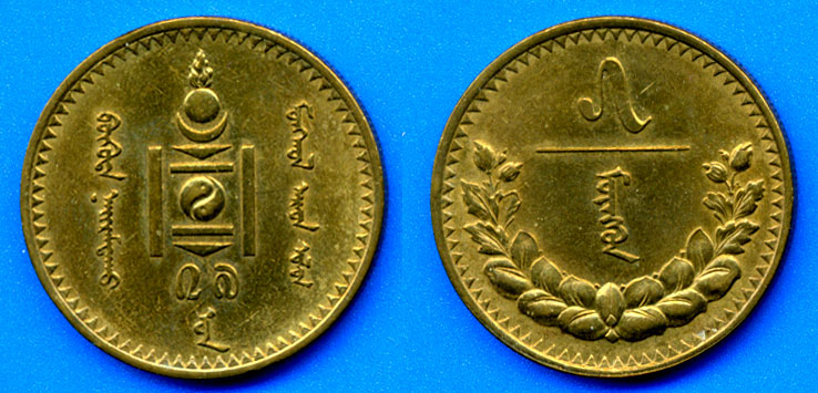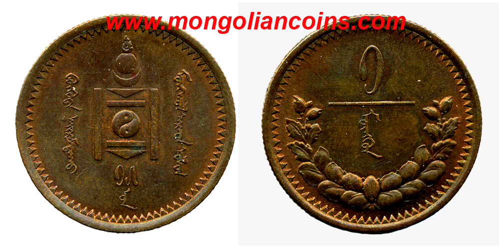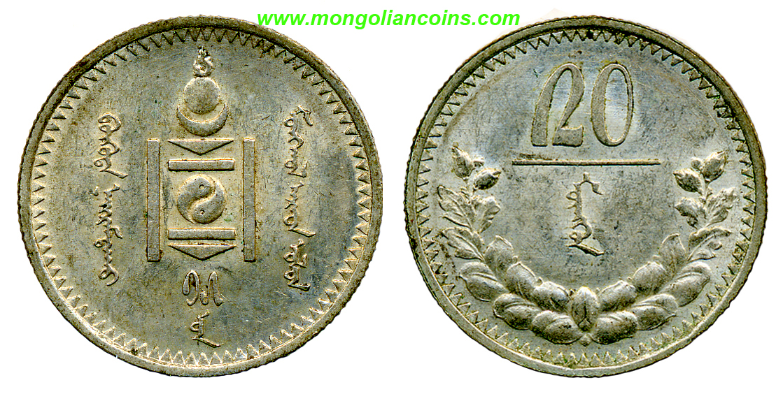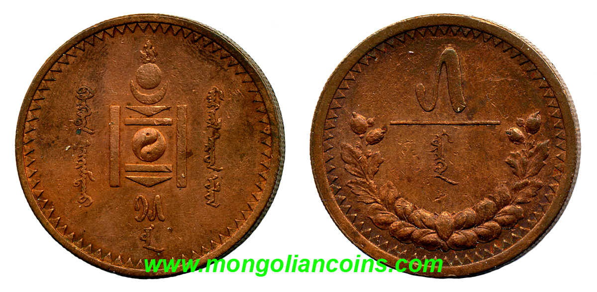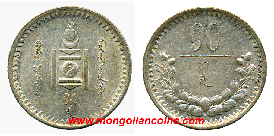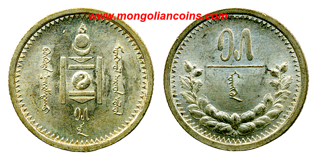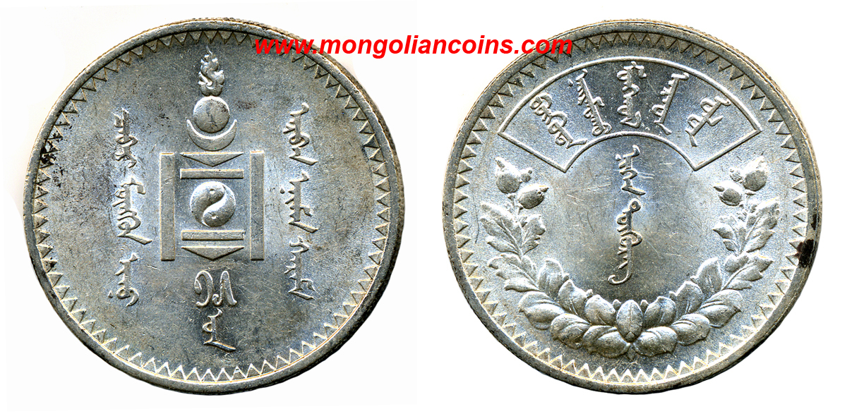 25 year (1925). 1 tugrik. 19.9957g, 900 Silver. KM8.