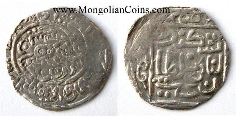 Extremely Rare type. Obverse: Two Tamghas within square - Chaghatayid descendent's tamgha at the left,
