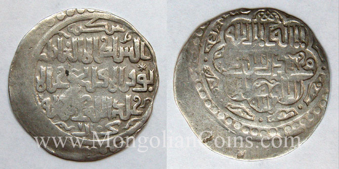 AR dirham. Ordu mint. Obverse: Allah, Tamgha (Alaghu???) in the word Allah. There is Uighur