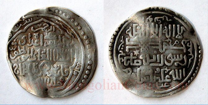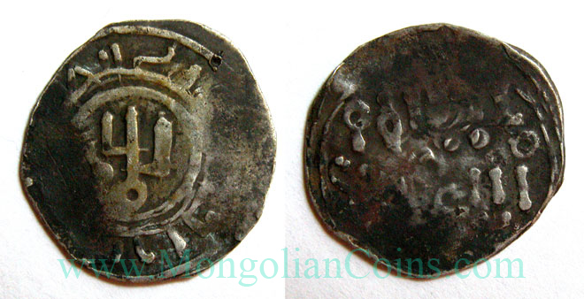 Taraz mint. Double Tamgha (Ugudei and Chaghatai). Reverse: David Star (hexagram).
