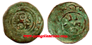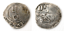 Degere tamgha (Qaidu, Duwa) at the right. Reverse: Ugudei's descendant's tamgha - in the center. 23mm