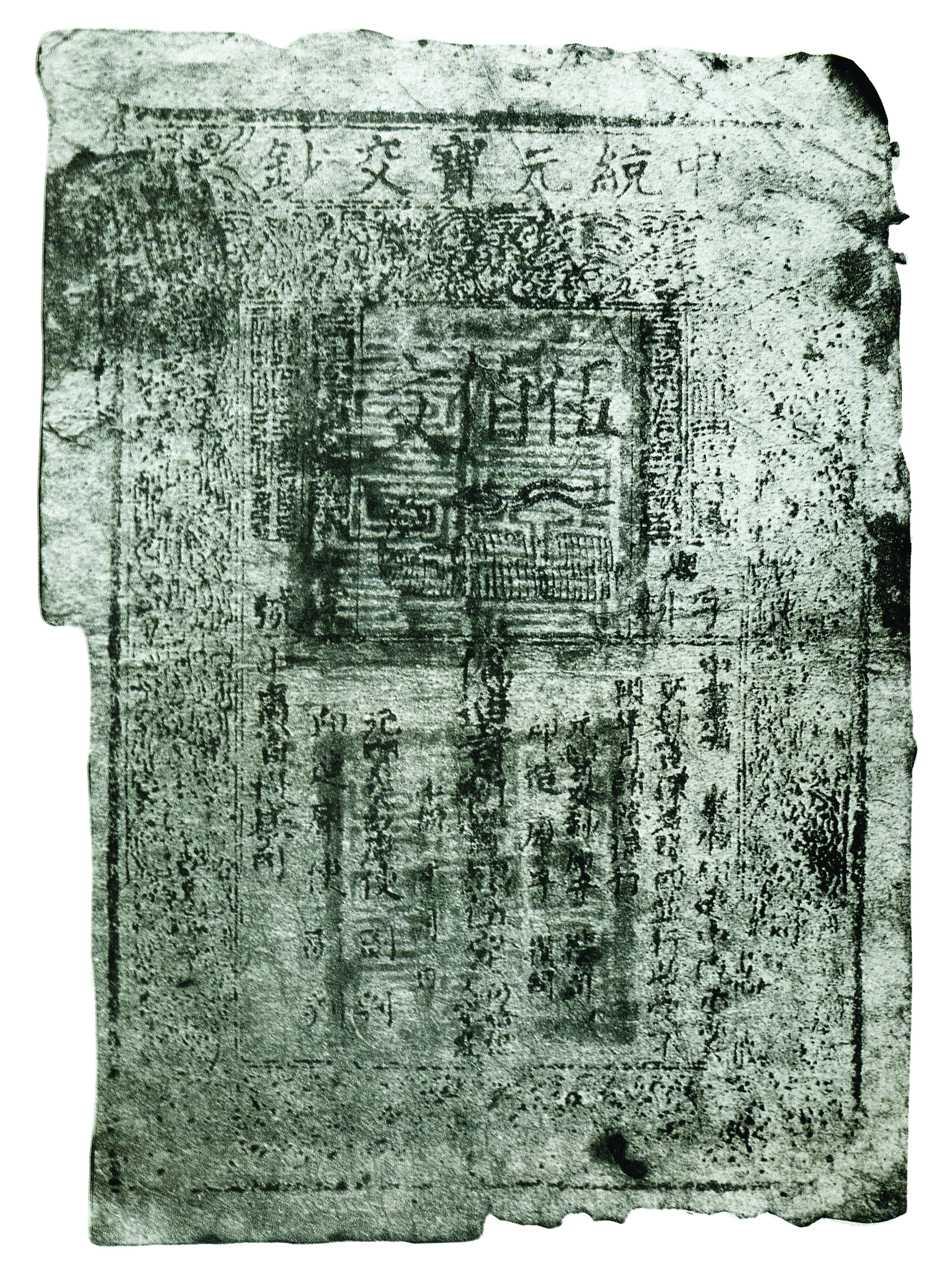 Qubilai Khan (1287). 295 x 210mm.Discovered in Wuxi County of Hunan Jiangsu in 1960. (The Wuxi Municipal