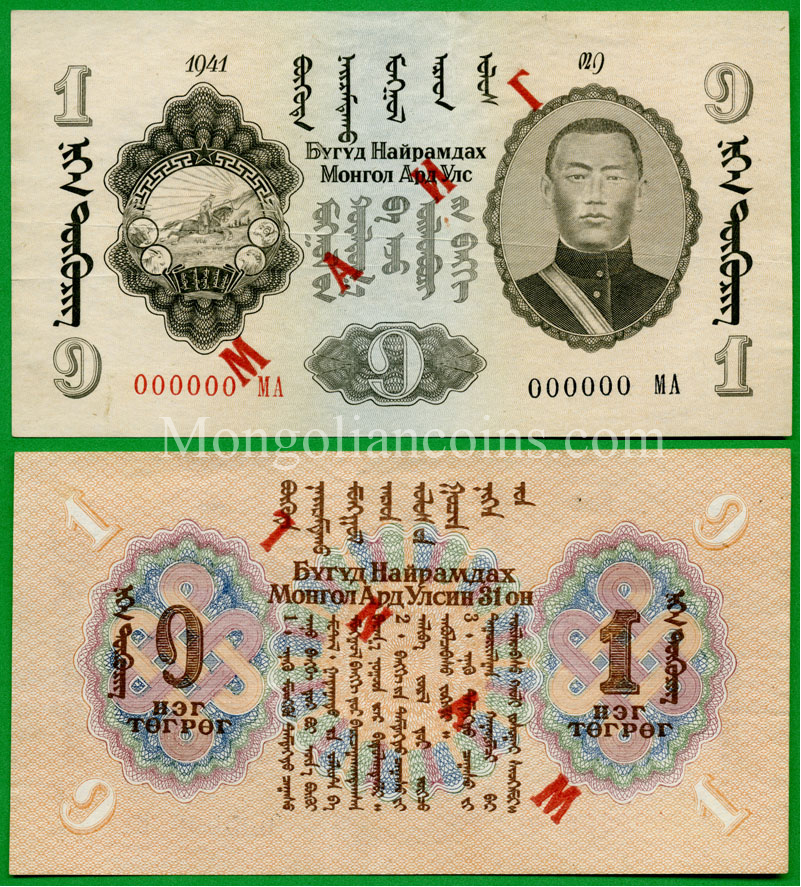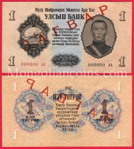 1955. speciman. 1 tugrik. 001NSP0090 |
