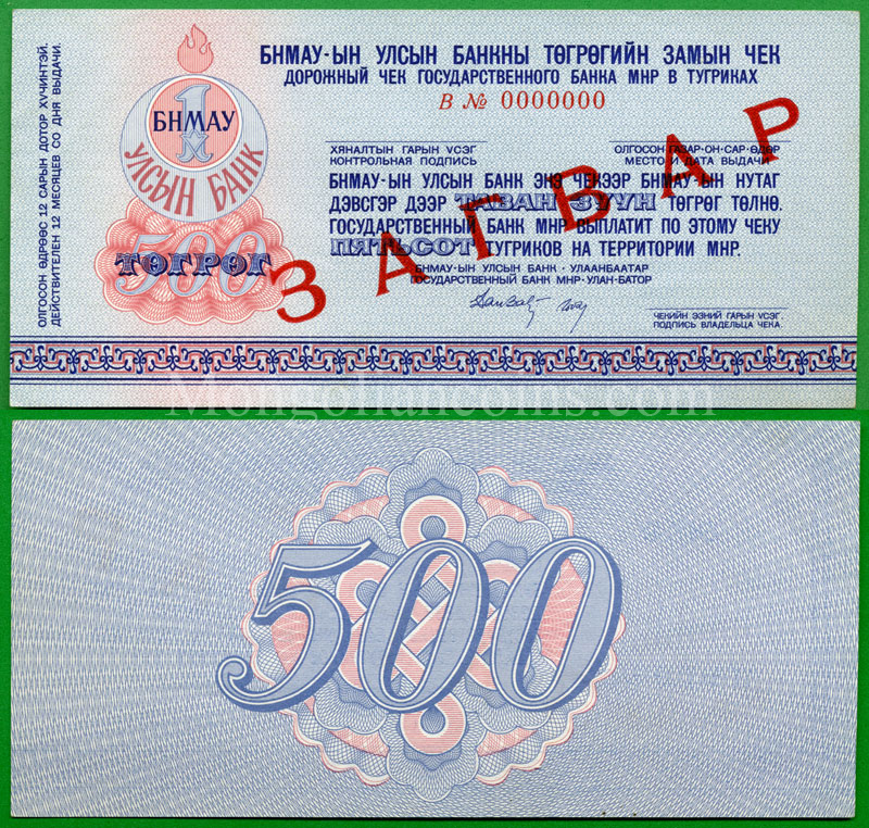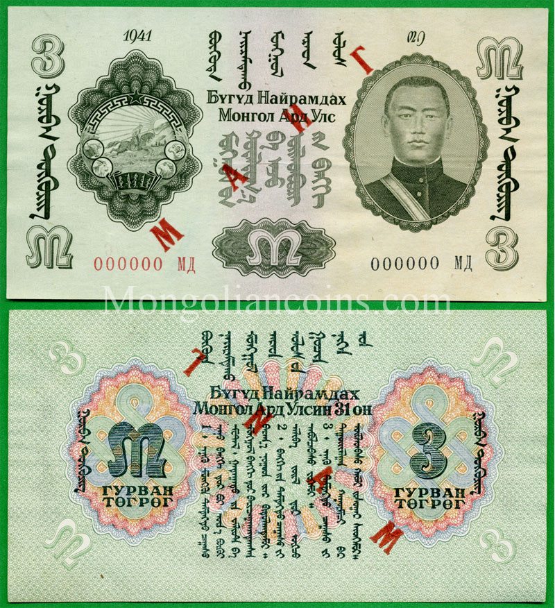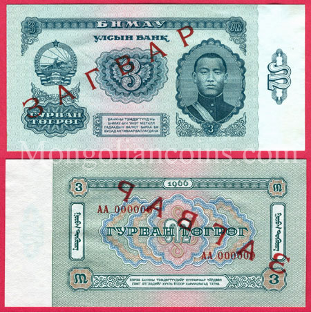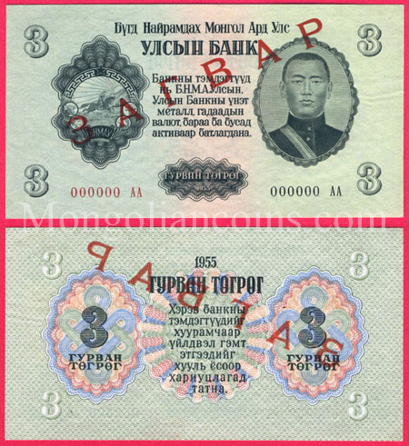 1955. speciman. 3 tugrik. 001NSP0100 |