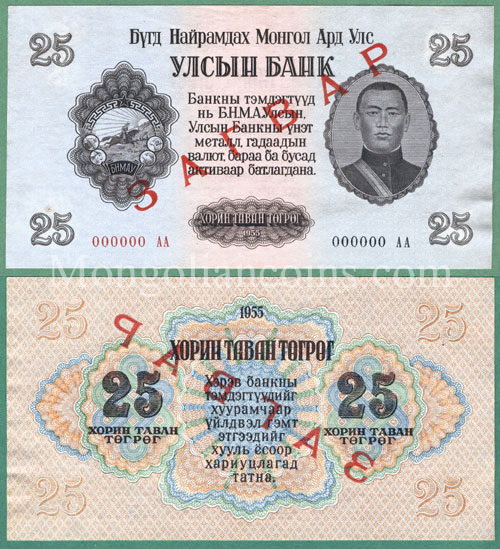 1955. speciman. 25 tugrik. 001NSP0130 |
