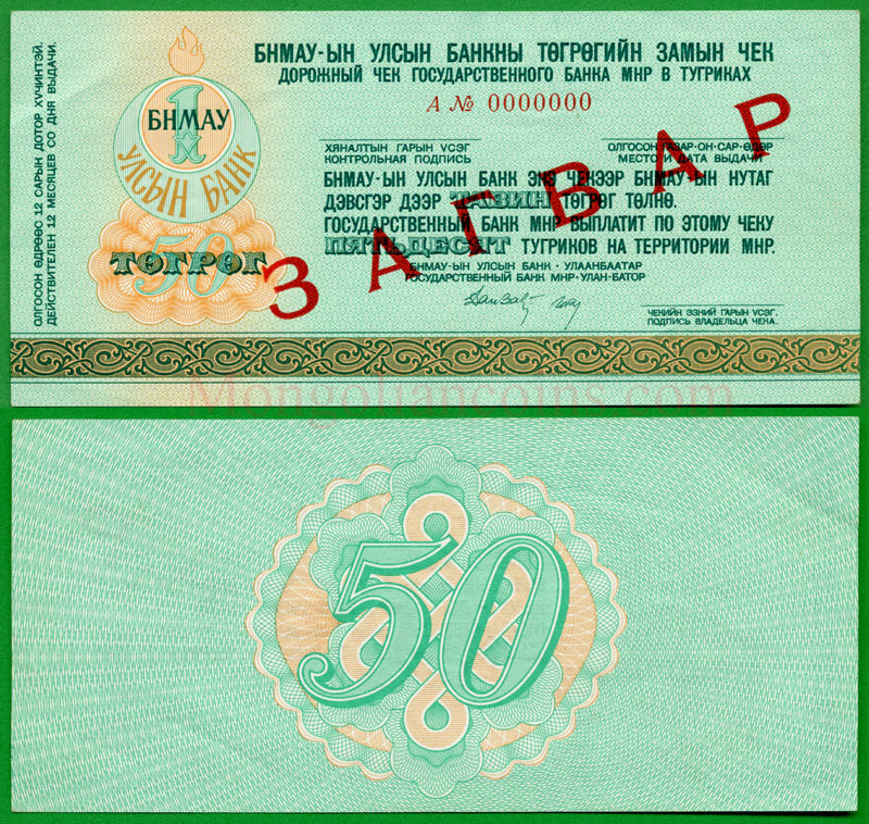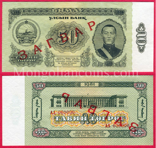 1955. speciman. 50 tugrik. 001NSP0140 |