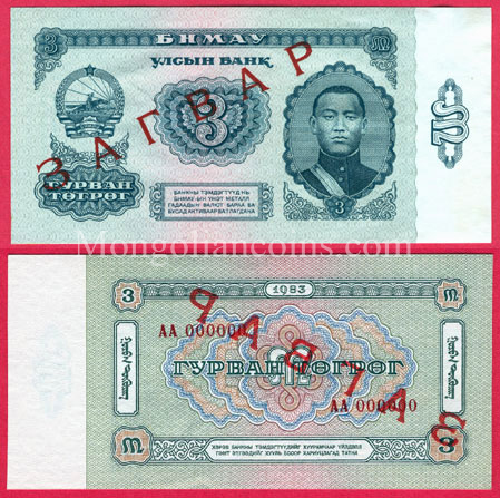 1983. specimen. 3 tugriks. 001NSP0240 |
